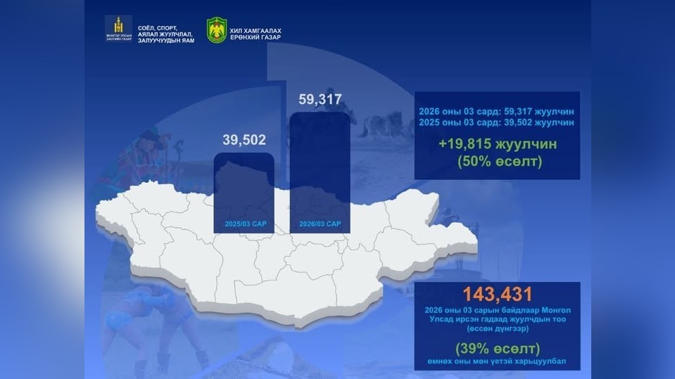 В первом квартале текущего года число туристов, посетивших Монголию, увеличилось на 39% по сравнению с аналогичным периодом прошлого года….